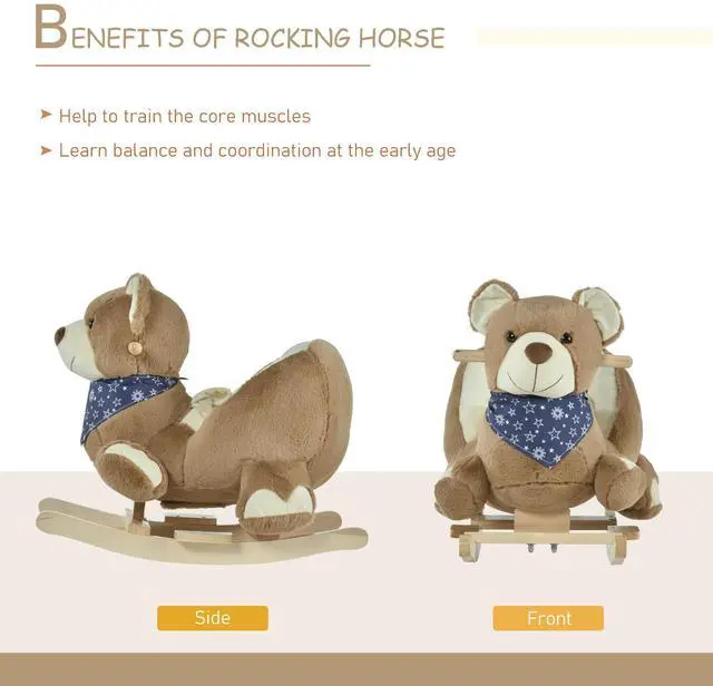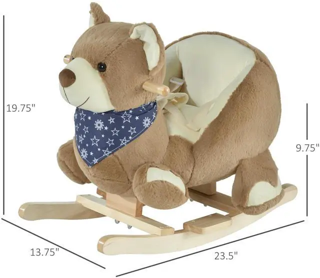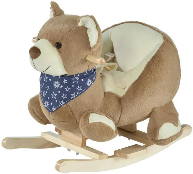 Finally, with our Qaba plush rocking horse bear, there's a riding toy that's sweet enough for your little sweetie! Playtime needs to be comfortable, which is why we lined the wooden frame of this kids rocking chair with soft plush. Speaking of that wood, we use it to be sure everything is safe and sturdy so your child can play with ease and peace of mind. For even more fun, just squeeze the wing and have this rocking toy sing you a song!