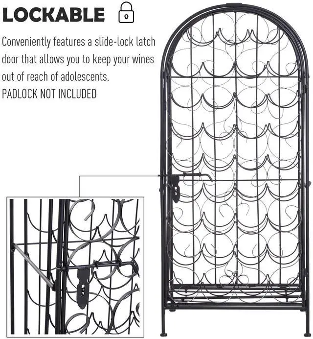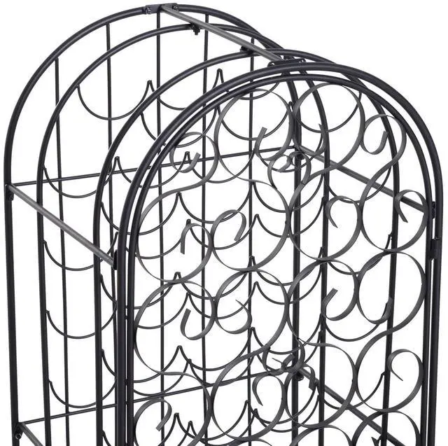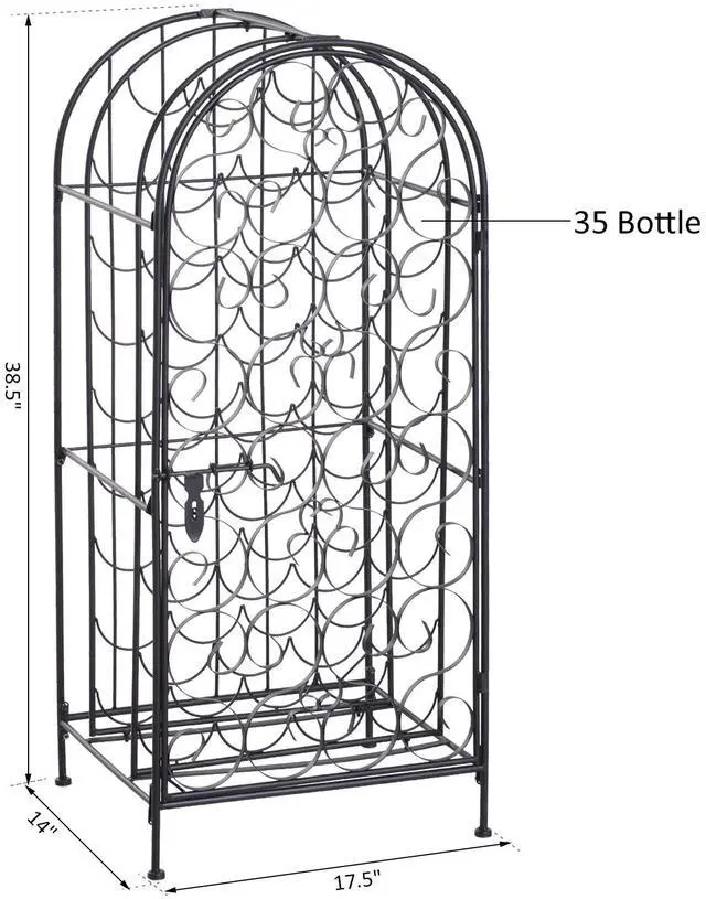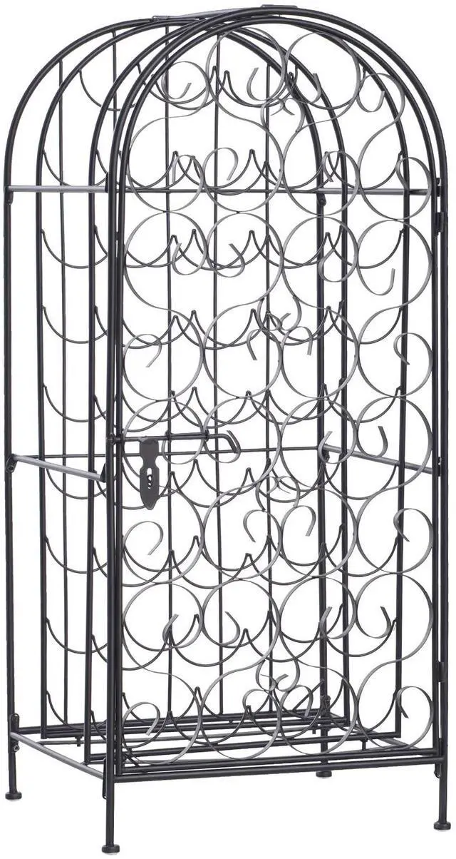 Love wine but don't have the space for a full wine cellar? Let this Aosom large capacity ornate wine bottle organizer lend a hand. Ornate scrollwork with antique bronze finish evokes the artistry of the Renaissance, a fitting setting for your wine. A swirling, elegant iron front door opens onto 35 circular bottle cradles. This wine rack is compact and convenient and will easily fit in a home bar, kitchen, or living room.