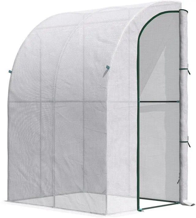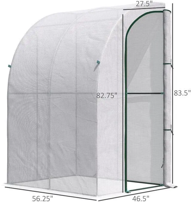 If it's green, you can house it with Aosom: vegetables, herbs, flowers, bushes, succulents, or tropical fruit saplings. Cultivate your options with a walk-in lean-to. Control heat and humidity levels with the easy-access zippered door. Protect plants from wind, rain, wild animals, and sun damage with the UV-blocking polyethylene cover. Lean it up to your home and use the four included stakes for extra stability against wind. Plant like a professional with Aosom.