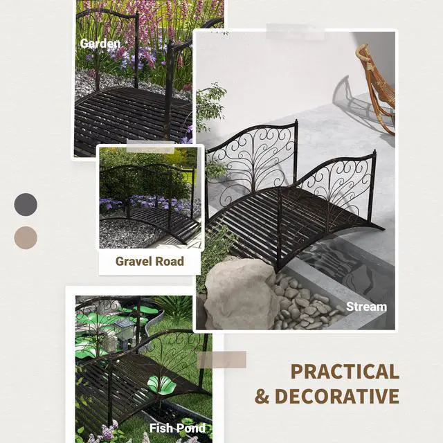 Bring an elegant and romantic touch to any backyard with the 4-foot arched garden bridges for outdoors from Aosom! This decorative garden bridge feature is the perfect addition to any setting and adds beauty and style with great functionality to any natural space. There are two side rails on the footbridge that feature beautiful scrollwork for extra elegance. With this exquisite backyard bridge, you can give your outdoor space an extra-fancy look!