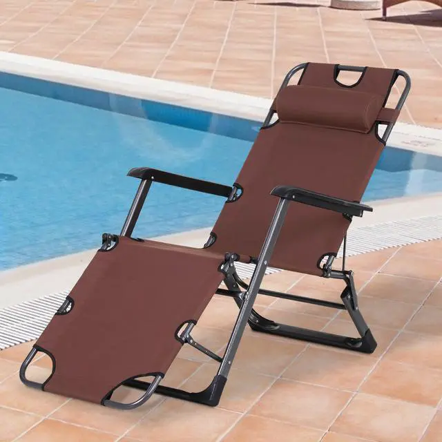 Sit or lay down with a portable sun lounger. Aosom has a sun tanning chair that's great for the poolside, campsite, or anywhere outside. It can be set to a classic sit-down position or lay down flat. Whatever you choose, a pillow will be there to pad your head, and you'll have armrests on the sides. It folds to fit in car. When you've brought it to the beach, a pocket on the back keeps your items safe and intact. Get out, get comfy, get Aosom.