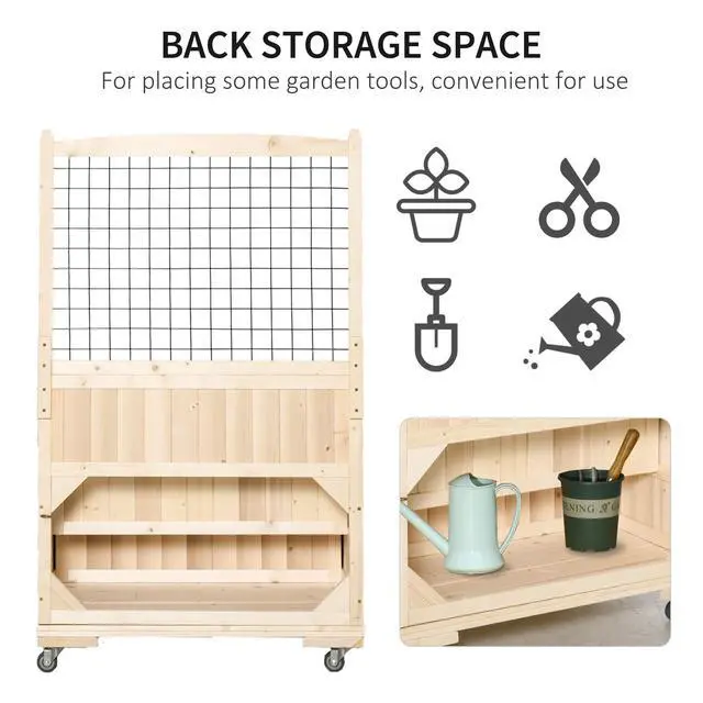 Create a stunning floral display with this charming planter and trellis combo. Perfect for adding a touch of nature to your outdoor space, its elevated design allows you to showcase your favorite blooms in style. The sturdy wooden frame and built-in drainage ensure your plants thrive, while the smooth-rolling wheels make it easy to rearrange or move to new spots. Whether on your patio, balcony, or garden, itâs a beautiful way to elevate your garden aesthetic and bring a piece of nature indoors.