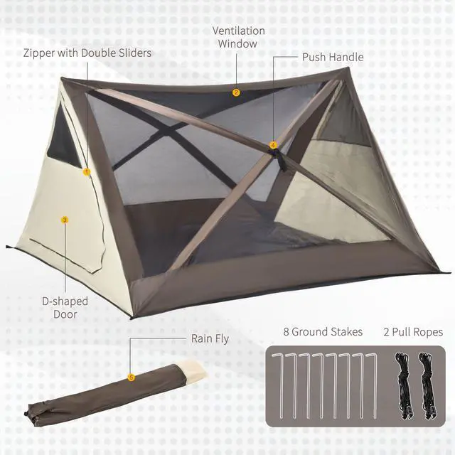 Give yourself the breathable and cool night experience with a big mesh wall to look up at the stars or the tree line. For protection, a 3,000 mm waterproof index offers extra certainty that you can stay dry. The instant design makes this an ultra-easy camp tent, adults, and all camp lovers alike to set it up and get their day started, allowing them to save time with a simple pull of two sides to get the sleep situation standing. Use this Aosom popup tent for convenience and comfort.