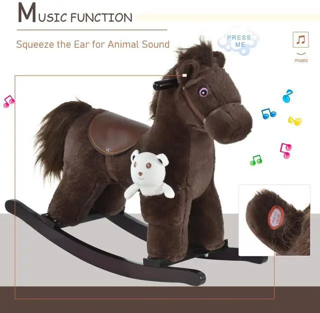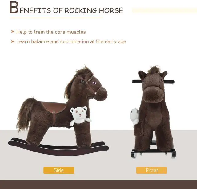 This cute rocking horse lets your child enjoy endless fun with a unique dinosaur plush design. Just imagine: your kids sit on this kids rocking chair, and their curiosity transports back to the time of cowboys and cowgirls. These rocking kids chairs help improve mobility, inspire independent and group play, and strengthens core/arms muscles too! As an added feature, this rocking toy comes with the simulated neighs of the horse, with the tail wagging too! Have fun and play with your kids!