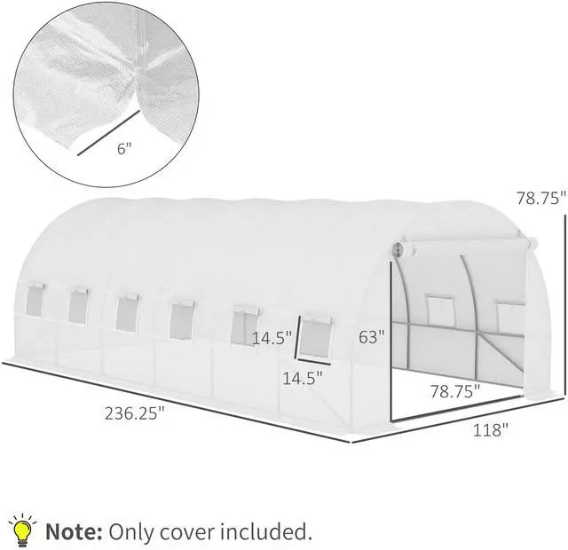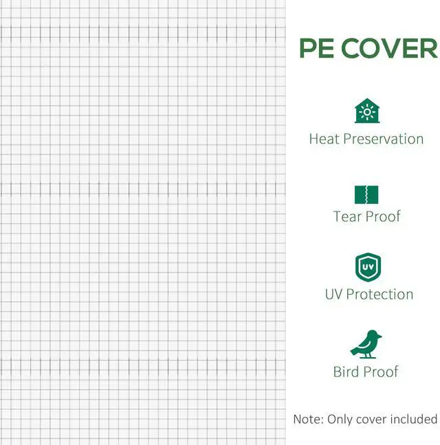 Are you a home gardening enthusiast looking for a way to keep your shovel the soil year-round? Just because your current greenhouse doesn't have a cover doesn't mean you need to buy a whole new greenhouse. Aosom greenhouse replacement covers can solve your problem and help you save budget. Our tarp is made of a PE mesh cloth that helps keep your crops at the right temperature and comes with 6" extended edges for a better seal against water. Raise your green thumb with Aosom.
