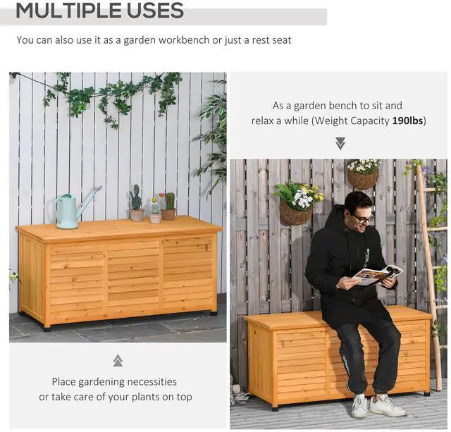 This Aosom outdoor storage box is an ideal solution to have in your garden, backyard, and deck. With a large size and spacious design, the deck box is a great place to store tools, garden equipment, and any other garden accessories. Made with durable wood and water-fighting paint, the wood storage box is protected from the environment, and sure to last. Furthermore, this storage chest isn't just for storage: it could also be used as a garden workbench, small table, or just as a nice place to sit and rest. Check out this outdoor storage box from Aosom, and get a place to store your outdoor tools.