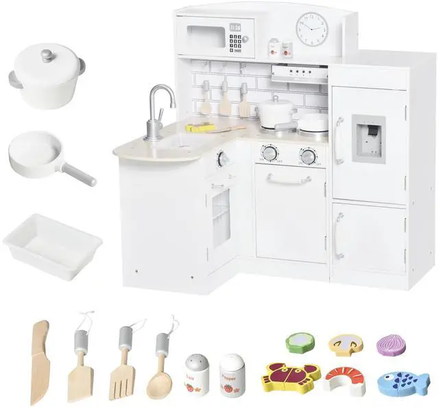 This kids toy kitchen set from Qaba is perfect for young boys and girls who love their imagination! A complete set of accessories are included with this kid's kitchen so that kids can create their own imaginative kitchen and cook just like the real things! Along the way, they will be developing fine motor skills, cognitive skills, and counting skills as well. Just come and enjoy your parent-child time brought by this cooking toy with your child!