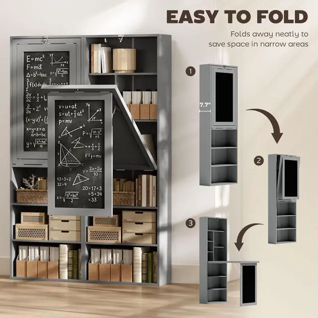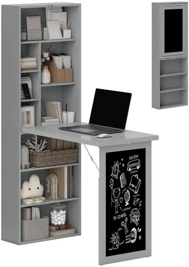 Make the most of your existing space with this Aosom folding computer desk with storage shelves. This fold-down study table comes with a modern 2-in-1 design and works as a working desk and storage shelf. This computer desk comes with a blackboard for a quick note! Our fold table desk is a stable and smart choice for your home office or study.