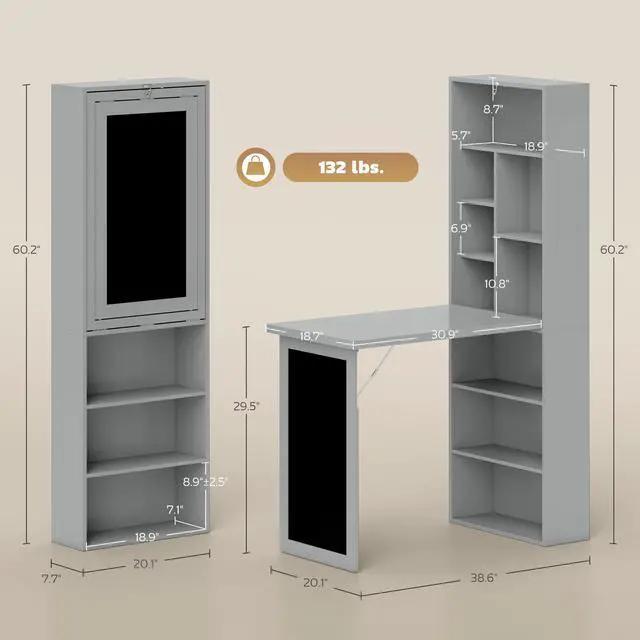 - - Weight Capacity: 132lbs (whole), 11lbs (shelf), 110lbs (tabletop)