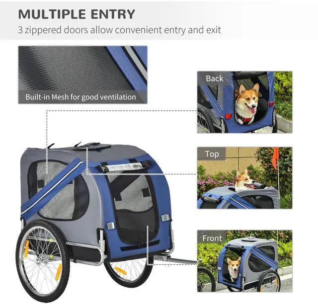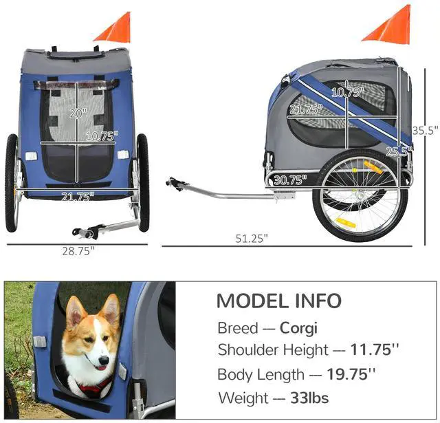 This compact pet bicycle cargo trailer is a great way to maintain an active lifestyle for your pets. The mesh zippered screen on the top and back and the meshed windows on the side allow for maximum airflow for your pet. With this bike pet trailer, just hook it up to your bike, put your pet inside, store your cargo in the convenient back storage unit and you'e off. The weather-resistant canopy will help keep away wind, rain, sun, and road debris.