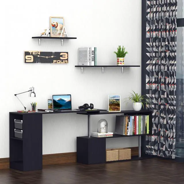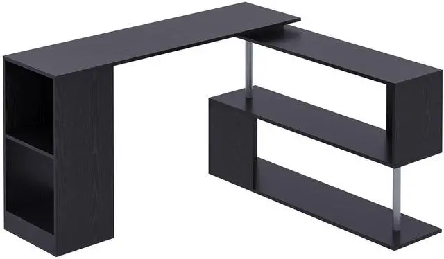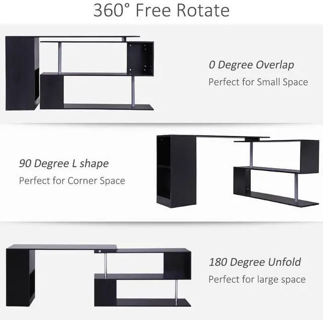 The Aosom L-shaped corner desk features a unique rotating design that can be adjusted to your needs and contains plenty of storage space. The modern look adds a touch of class to your office or home and is crafted from high grade materials. Create a stylish workstation, storage unit, and display case in one with this unique offering from your friends at Aosom.