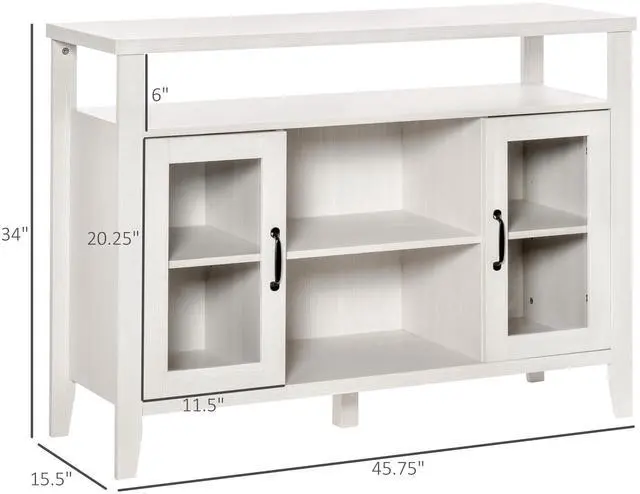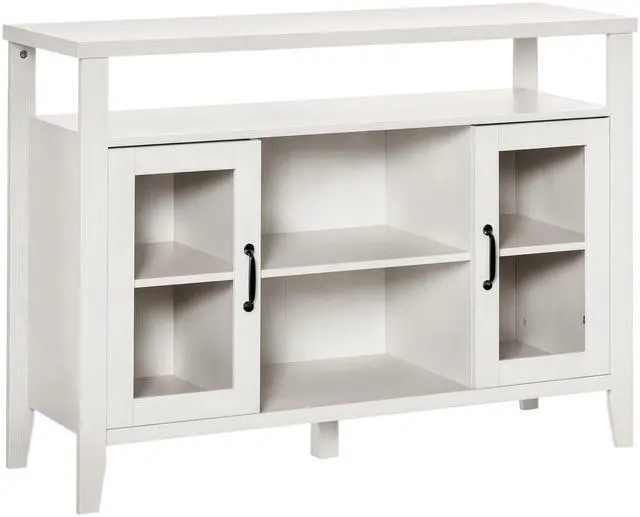 Are you buliding a pile of things that are creating clutter because you don't have enough storage? Aosom can help with our sideboard. This buffet cabinet with storage has a large countertop and 3 open shelf spaces. The framed glass doors add extra charm while being able to see your items inside without worry of dust. You can adjust the hinges so that your door gaps can be flush. The bottom shelves are adjustable, so you can customize the space for different sized items.