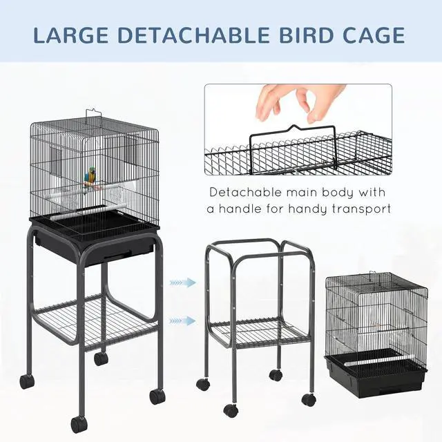 Keep your pet stimulated, and happy with an indoor bird cage with wheels from Aosom that promotes well-being and longevity for your feathered friends. Your bird can benefit from the physical and mental stimulation provided by an enclosure that provides plenty of living space and room for activity. With 4 wheels, this conure cage can be easily moved from a room to the next with a storage basket underneath to hold bird seed, extra toys, and more!