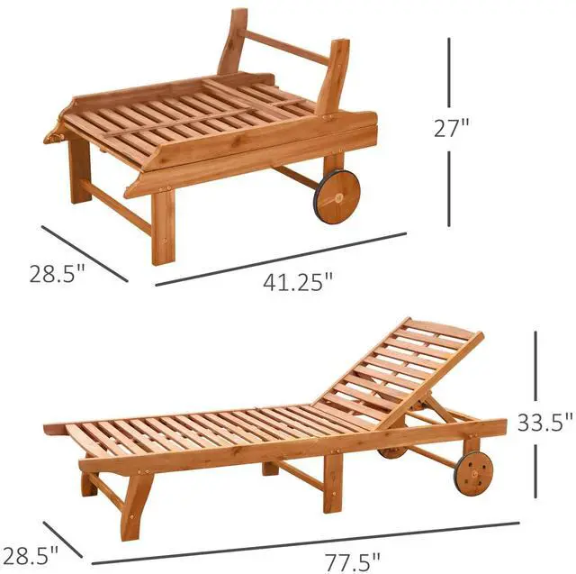 This Aosom chaise lounge chair is everything you expect from an outdoor recliner and more. It features weather-resistant acacia wood construction that is built to withstand the elements. Our lounger reclines for ultimate relaxation with its 4-level adjustable backrest. With easy movement thanks to its two back wheels and folding design, it is a great addition to your lawn, patio, deck, poolside, or other outdoor space!