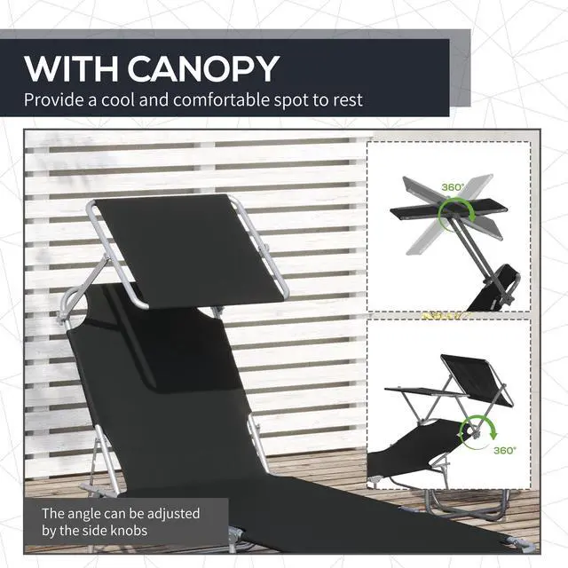 This poolside lounge chair with a sunshade can keep the glare out of your eyes when you bask in the sun. A patio lounger made with quality steel and a blend of 300D and 600D Oxford cloth, it offers the strength needed for outside. Select your favorite of four adjustable backrest positions. A lightweight, portable, foldable sun chair, it's easy to store and travels in the trunk of your car. Experience greater comfort in any outdoor space. Get out and get comfy with an Aosom sunbathing chair.
