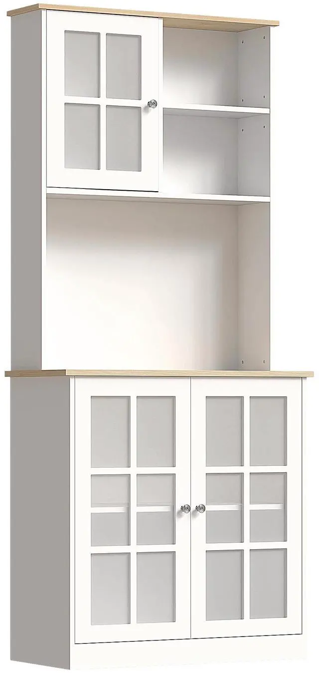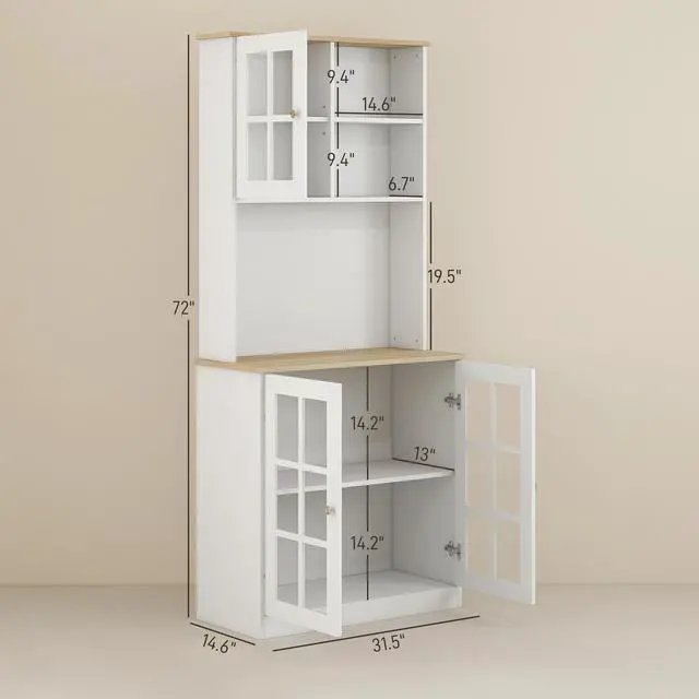 Sleek, versatile, and built to last, our 72" freestanding pantry brings style and organization to your kitchen. With ample storage space, transparent glass doors, and reasonable construction, it's the solution for your kitchen essentials in limited kitchen space. Experience the convenience of aligned doors and transform your space with this timeless and functional storage cabinet. Upgrade your kitchen today.