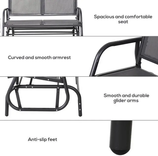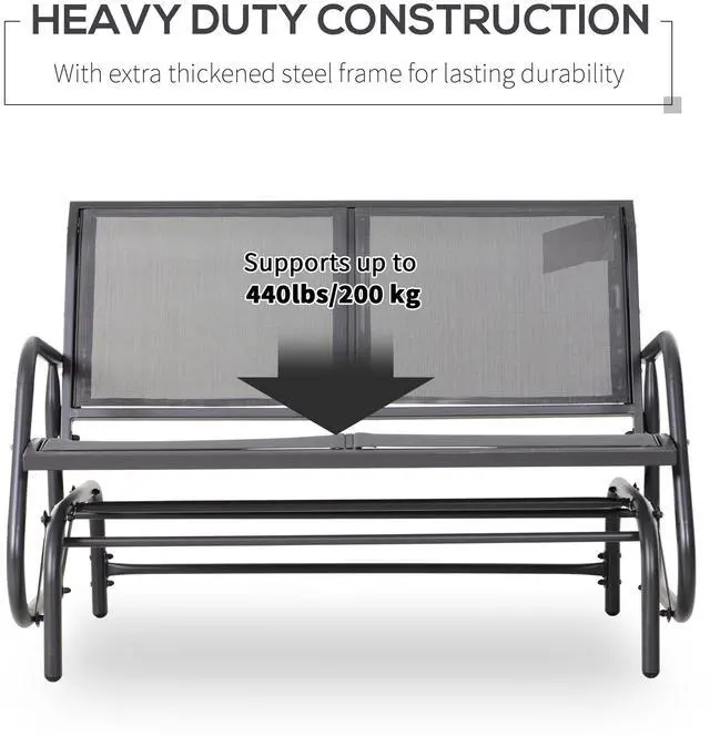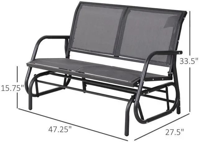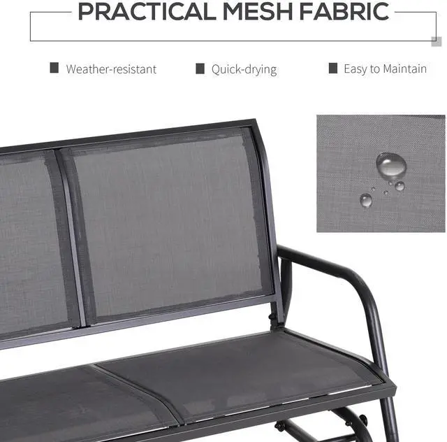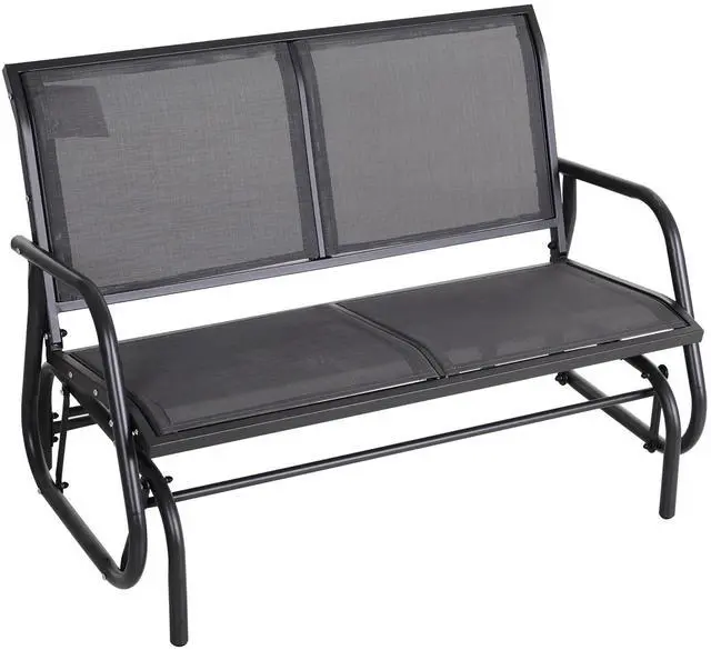 Made out of ventilating and weather-resistant fabric, the mesh seat and backrest of this porch rocking chair provides fantastic comfort and coziness. The curved and smooth rocker arms of this double rocking chair bring increased comfort while you're lounging and relaxing. If you prefer to read a book or take a nap in a shaded area rather than bathe in the sunshine, the glider chair is lightweight you can move it without effort. This double swinging chair allows you to pass the time with family and friends in extreme comfort on your patio, front yard, or porch. Add this accommodating and convenient bench rocker to your home and build a unique little world exclusive to you. When the sun is shining, and the breeze is blowing, this bench only adds to the setting.