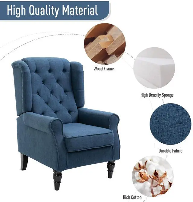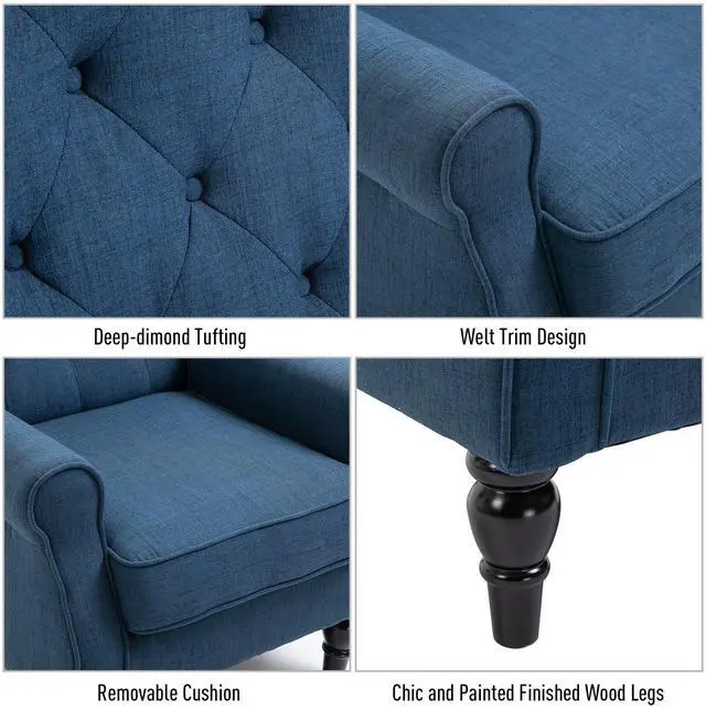 Bring style and character to your living space with this Tufted Accent Chair from Aosom. This chair wonderfully complements any decor with elegantly tufted cushions polished wood legs and a fully padded seat. Breathable fabric encases thick padded removable cushions to give you hours of comfortable stylish sitting while colorful upholstery give this chair a stunning unique appearance that is sure to stand out in all the right ways. Have fun with your space with our fashionable accent chair.
