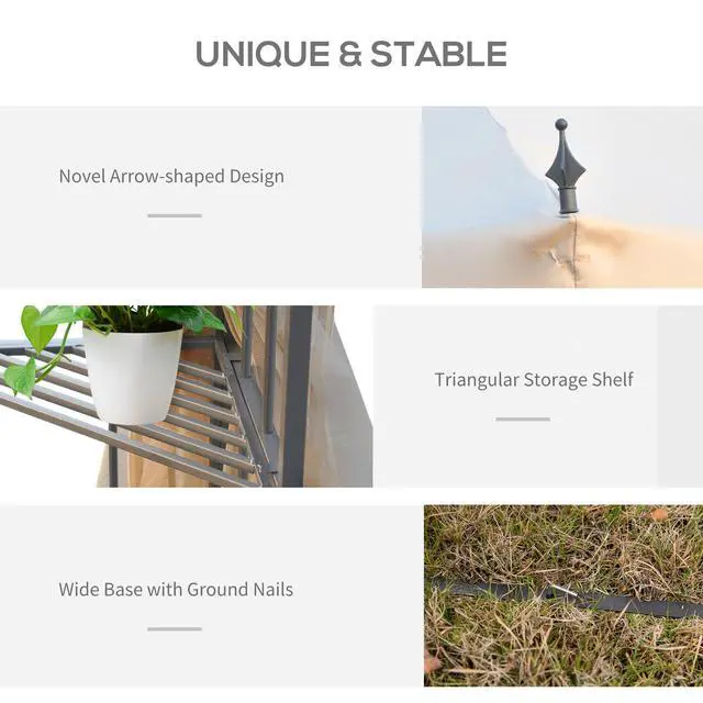 Our large deck gazebo has reinforced corners and a peppering of arrow tip motifs, making it an excellent accent piece for a wedding or other events. Each corner comes with shelves to place plants or other decorations. It has a two-tier canopy that adds aesthetics and helps it redirect wind flow for a more stable design. This canopy, like its sidewalls, allows in the breeze, filtering out those unwanted winged fiends. Get out, get comfy, get Aosom.