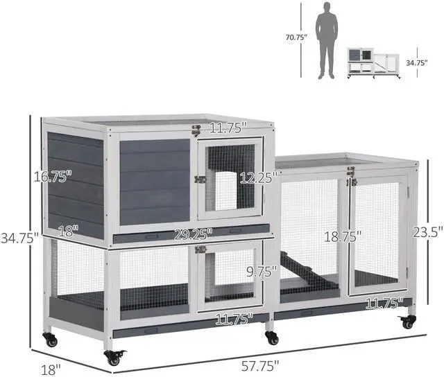 - - 6 wheels to provide easy movement, 2 of them with brakes to keep the outdoor rabbit hutch in place