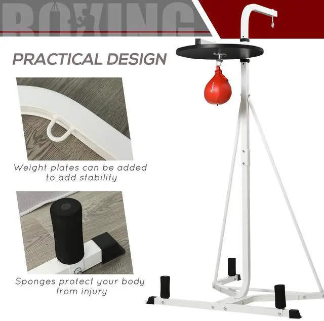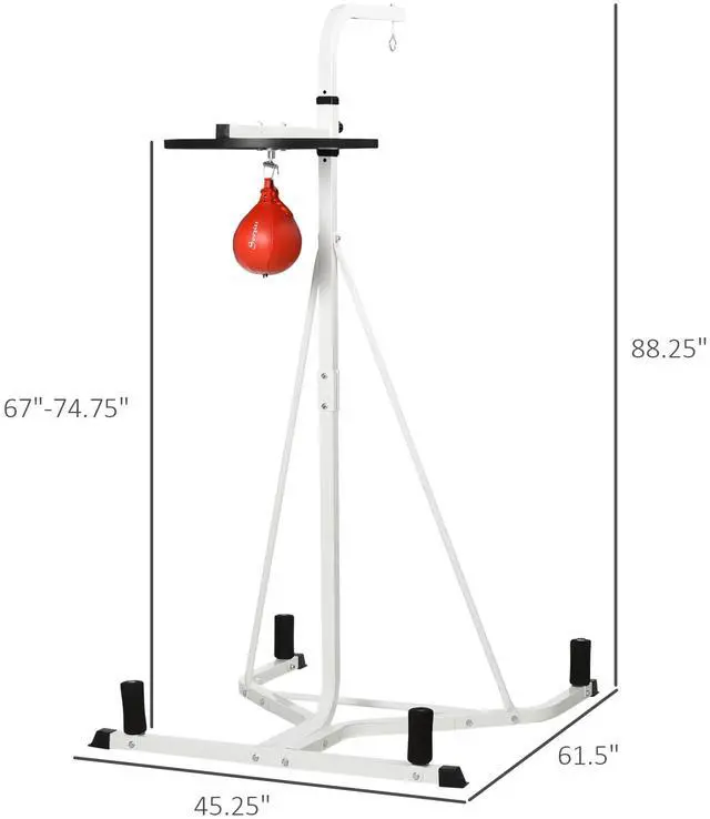 Perfect your boxing technique in the comfort of your own with this boxing stand from Soozier. The boxing bar is made of heavy duty steel with powder coating for stability, the speed bag is adjustable, allowing you to set it to the correct position to fully utilise your workouts and prevent any strains that could occur from punching too high or low. It is great for working on a variety of techniques, speed and punches, helping you to improve your skills and become more confident and agile.