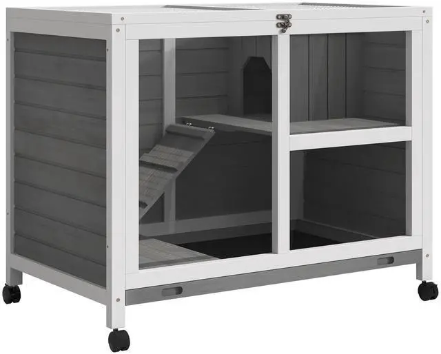 This pet bunny cage from Aosom is small enough to fit easily in your living space. Set it next to you on a desk while you're working, or put it on a side table. With wheels that make it easy to roll the wood bunny cage into a new spot, the structure allows versatile set-up. The window lets you see in with a crystal clear view that lets more sunshine in, and with safe materials, you can create a 100% safe pet cage to treat your pet with care and protect the Earth.