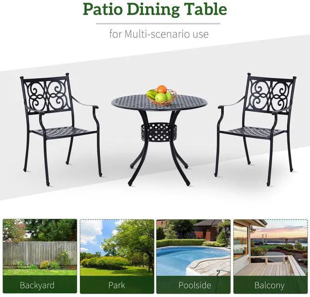 - - Solid, rust-resistant cast aluminum built in an elegant design to complement your patio
