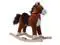 Giddy-up cowboys and cowgirls! Our traditional plush rocking horse will turn your home into the rootin' tootin' Wild West! Handlebars and footrest will help your child build the right muscles and learn to balance themselves. Wearing a handsome red scarf and with an added feature, this horse comes with simulated galloping sounds by squeezing the horse' ear. The soft huggable plush body with comfortable saddle and stirrups are perfect for long rides into the sunset.