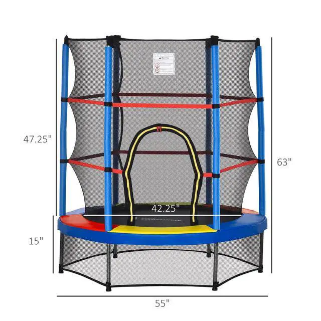 Looking for a low-impact way for children to get a great aerobic workout? The Aosom Trampoline with a security enclosure net will be a great solution. Made of a metal frame, it is built to last with daily use. Little ones' play will be safe with the added enclosure net. Instead of hard metal springs, it incorporates heavy duty bungees to provide a great bounce while eliminating the dangers of conventional springs. Add this toddler trampoline to your existing activity room or home gym today.