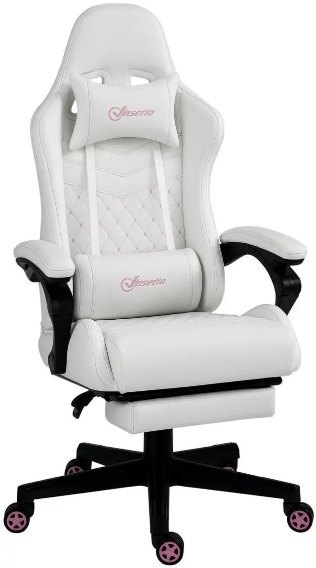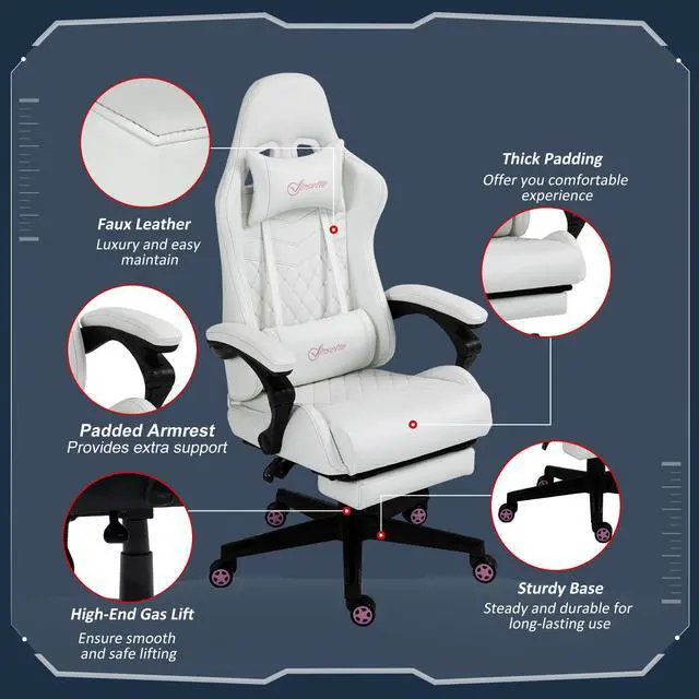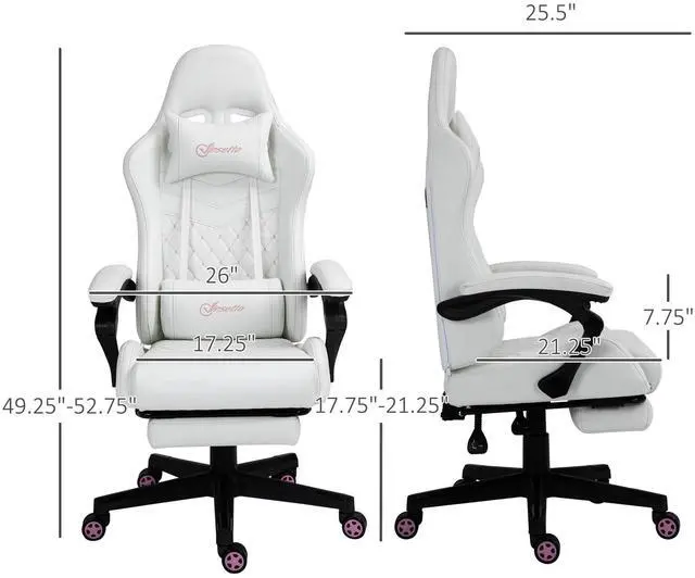 Create an e-Sport gaming atmosphere in your office with this computer chair from Aosom. Featuring a high-back diamond-stitched seat and back, padded armrests, lumbar support, and headrest pillow offer comfort for long gaming sessions or workdays. Adjust the seat height and recline angle along with a retractable footrest so you can relax during breaks. Keep yourself in the game with comfort and functionality with this Aosom racing chair.