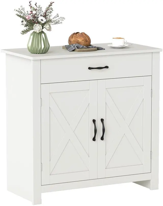 The buffet cabinet with storage from Aosom is your trusty assistant in keeping your kitchen tidy. The rustic barn doors and distressed finish on this item make it a visually appealing addition to any home décor, whether it be traditional or modern. With a spacious drawer and a 2-tier cabinet with an adjustable shelf, this kitchen storage cabinet provides ample storage for your collections. Say goodbye to clutter and hello to a beautifully organized space with Aosom farmhouse buffet cabinet.