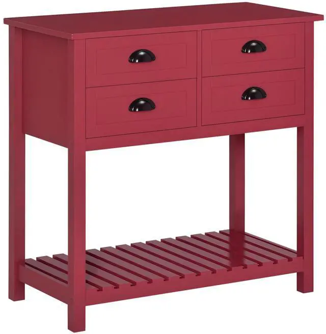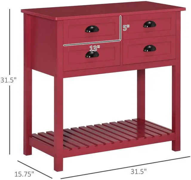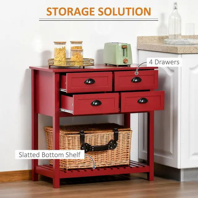 Aosom knows that storage space is essential, which is why you need this sideboard in your home. This cabinet will go great in your kitchen, living room, dining room, or hallway, where you have space along your wall for storing, displaying or serving guests. This console table has four drawers and a bottom slatted shelf, elevated from the ground so that if there's a water spill, your things won't get wet. Take advantage of the small spaces in your home with this sideboard cabinet from Aosom.