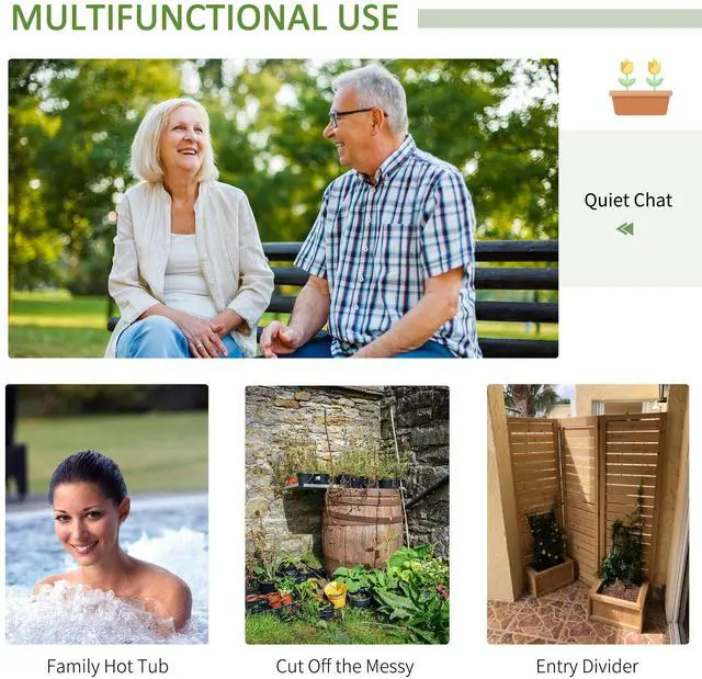 Immerse yourself in the tranquility of nature with the Aosom wooden privacy screen, designed for retired nature enthusiasts seeking simplicity and elegance. On a warm afternoon, you can sip tea in your garden, surrounded by the beauty of your favorite roses and herbs flourishing in the integrated planters. This screen not only enhances your garden's aesthetic but also creates a serene nook for your gardening pursuits.