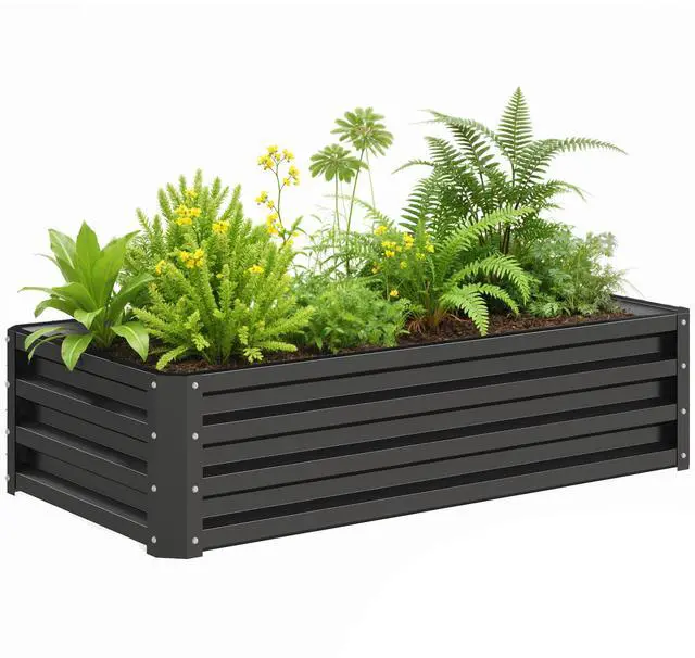 • Aosom Galvanized Raised Garden Bed, 4' x 2' x 1' Metal Planter Box, for Growing Vegetables, Flowers, Herbs, Succulents, Gray