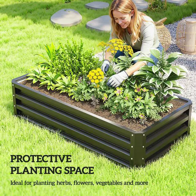 This galvanized steel raised garden bed outdoor not rust or rotting is a great yield blend for garden use. It's made from galvanized metal for long lasting utility. Stronger and stable rectangle appearance will not warp more solid than wood. The elevated garden bed will provide adequate soil drainage and keep root development warm and strong to improve plant health.