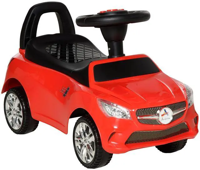 This push car from Aosom is a perfect gift for toddlers 18-36 months old, with its foot-to-floor design giving them the confidence to learn to walk on their own. The horn and music features help create a fun atmosphere. The hidden under-seat storage compartment will no doubt become their secret location to store snacks and toys. You can enjoy parent-child time by pushing this riding toy. Easy-to-control steering wheel make this ride-on car an easy choice for parents.