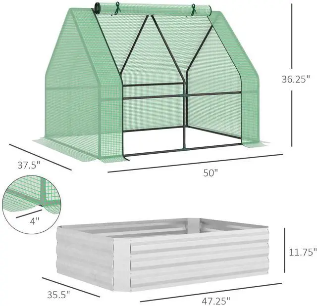 • Aosom 4 x 3 x 3ft Raised Garden Bed with Mini Greenhouse, Galvanized Raised Garden Bed with Cover for Herbs and Vegetables, Small Greenhouse for Patio Garden Balcony, Green and Gray