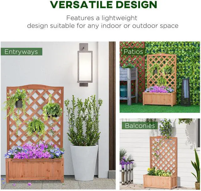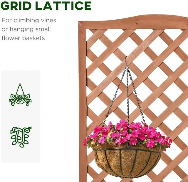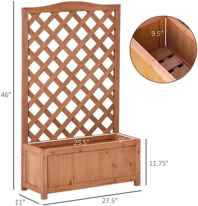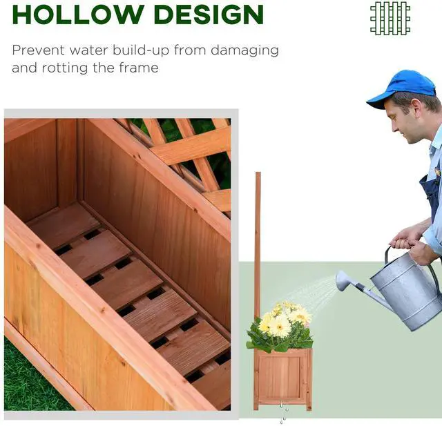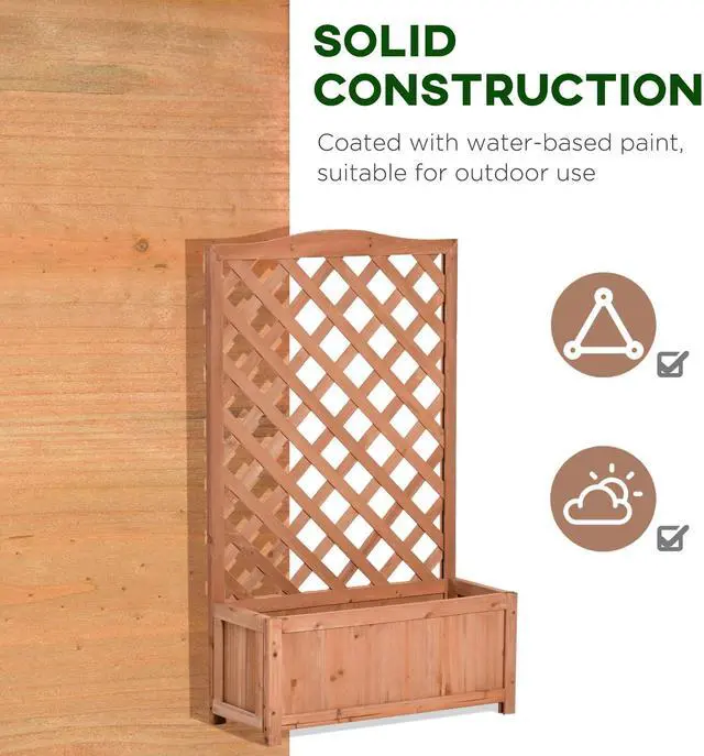 Give your flowers a beautiful place to grow and flourish with this lattice planter from Aosom. Tall and narrow in design to allow it to fit into smaller spaces with ease, the body is crafted from solid wood for durability. The rear trellis is a great addition to climb vines or create a display space. Our planter raised bed is great to plant flowers, herbs, or just as a decorative display area. It is a great item to have and will match any outdoor setting.