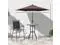 Give guests the best with a patio dining set by Aosom. This outdoor patio bar set includes two folding armchairs, a wave textured tempered glass dining table and an umbrella. The umbrella doesn't just protect guests from strong sun from above; you can also adjust it to keep out glare from any angle. Fold up chairs for easy moving and storage. Keep cool and sit cafe-style for dinner and drinks on the deck. Parked on the porch or placed poolside it adds seating anywhere outside.