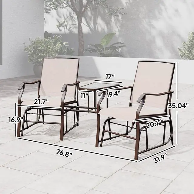 - - Steel metal frame sits two people comfortably at 352 lbs. per chair