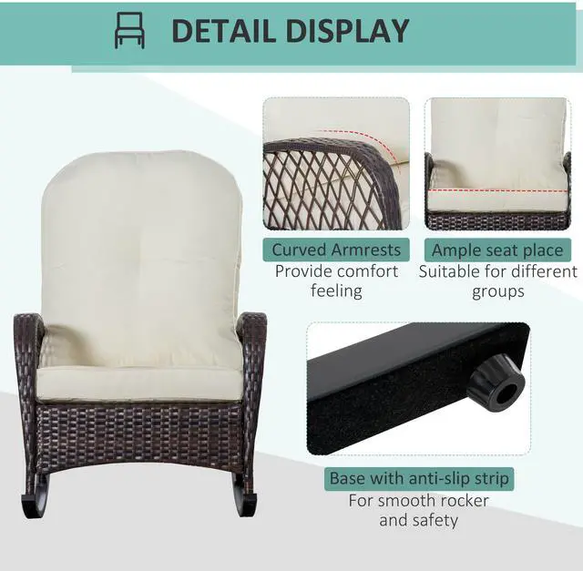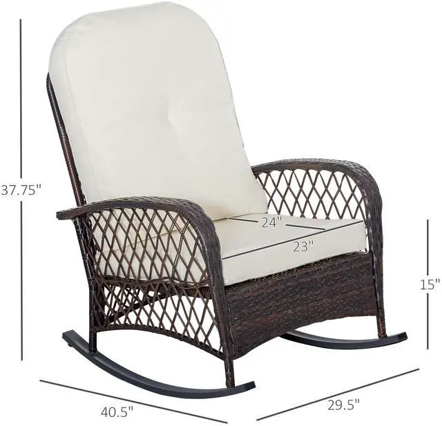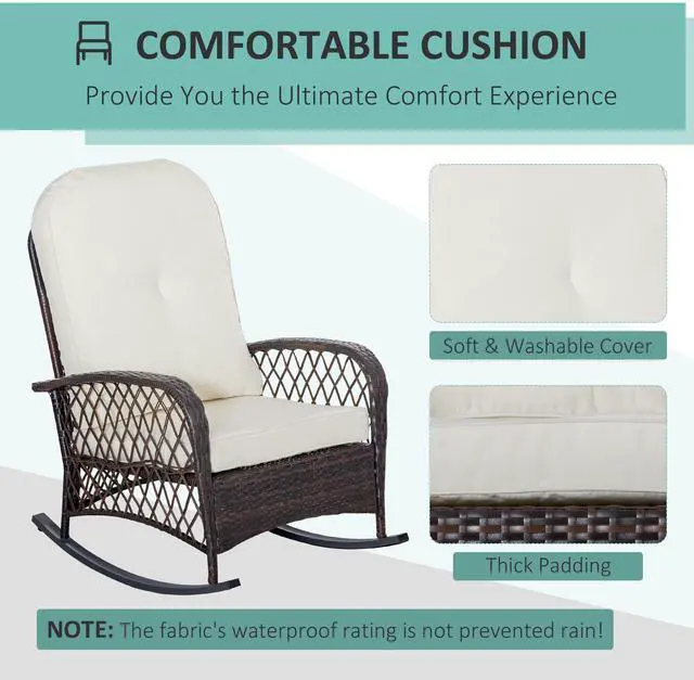 This luxury classic styling outdoor rocking lawn chair from Aosom provide relax seating place for your park, patio, backyard, garden. The classic rocking chair made of heavy-duty steel frame wrapped with all-hand woven PE rattan can withstand for years of use. Extra thick padded cushions provide comfortable seating experience, the seat cushion cover with zipper for easy removal and washable. Let brings you a happy, relax, and enjoy the great outdoor leisure time.