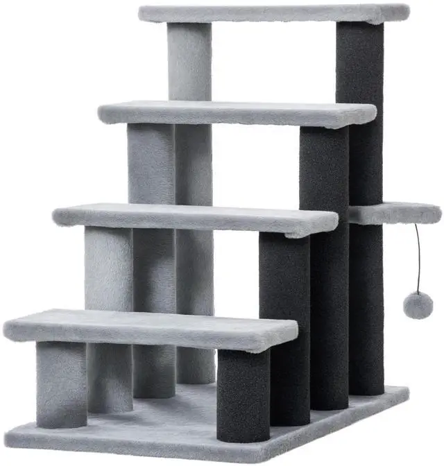 Is your kitten or cat scratching up your furniture? This Aosom cat tree has everything they need to give in to those animal instincts. The thoughtful four-step design gives your pet a fun place to play, and for your older animals, it's a helpful way to help get them on and off the bed or couch. With this small cat tree, each step lets them get their energy out without ruining your sofa or chairs. Give your cat a good place to scratch with cat stairs from Aosom.