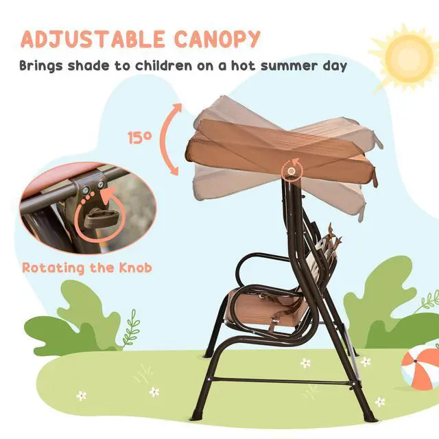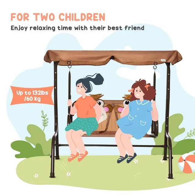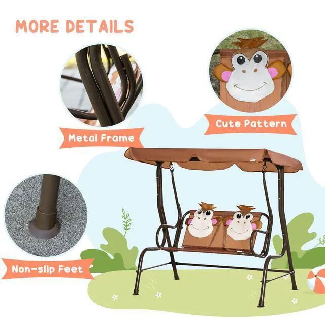 This Aosom funny monkey bench swing for kids, with its adjustable roofing and bright-faced cartoons, accommodates comfort by allowing protection from different angles of the sun. The happy design grabs the attention of little ones, while the seatbelts keep each child swinging and smiling in place. Constructed for strength and safety, this child swing chair is sure to leave kids enjoying themselves.
