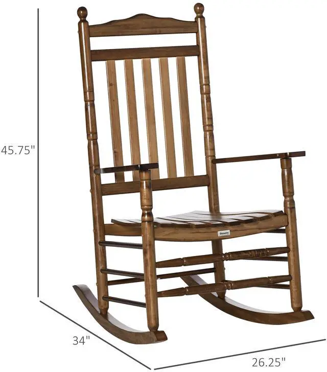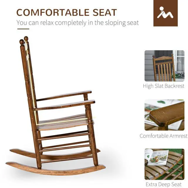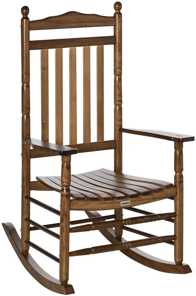Rock back and forth in the warm afternoon sun with patio rocking chairs from Aosom. Comfort meets quality with this outdoor rocking chair. The chair features a solid and natural wood for a stable structure and a wide, ergonomic seat that supports the body to provide the ultimate lounging experience. The paint finish is UV resistant and won't fade quickly. Enjoy a relaxing day in the garden, backyard, or patio with this stylish rocking lawn chair from Aosom.
