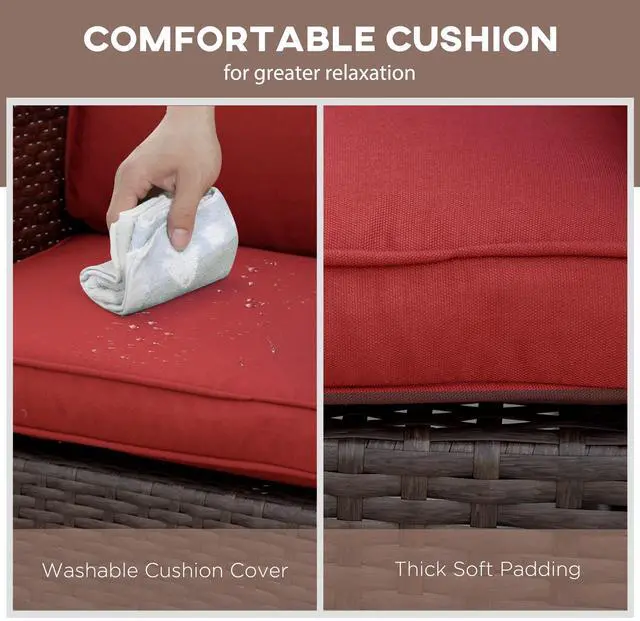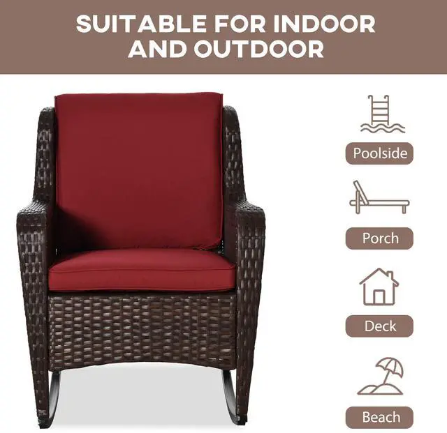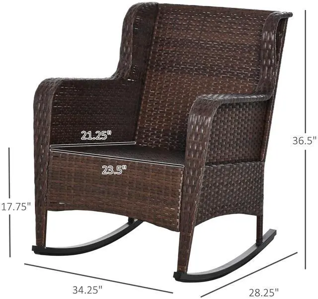 Sway through the breeze and spend time outside with Aosom's comfy outdoor rocking chair. The seat and back of our porch rocker feature soft padded cushions, and thick armrests cradle you all around as you tilt back and forth on a soothing, quiet rocking base. Handwoven, this patio rocking chair offers a classic look with all-weather materials. No need to cry over spilled milk; the cushion covers are removable to make spot cleaning easy. Get out, get comfy, get Aosom.