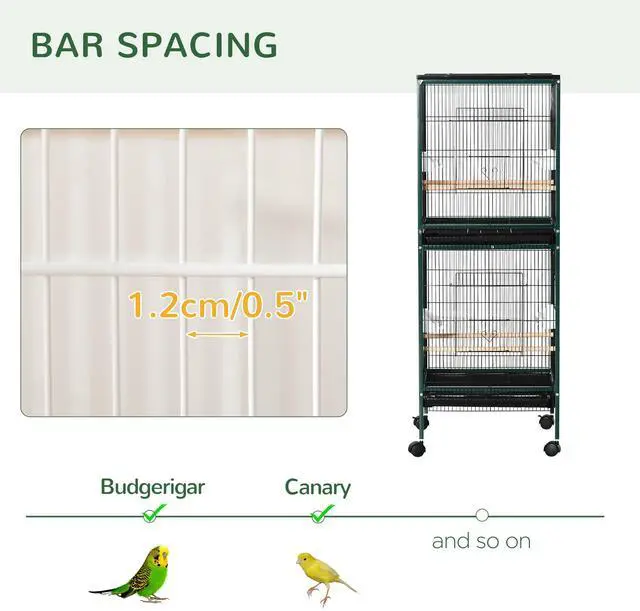 Birds need space for their wingspan, and this double bird cage allows impressive amounts of room from left to right, offering a distance that's wide for a homey environment. The doors on all sides allow easy access wherever you're coming from, making feeding quick and easy when you're on the go. This metal bird cage offers plenty of living space and room for activity. Keep your animals safe and happy with this indoor aviary from Aosom.