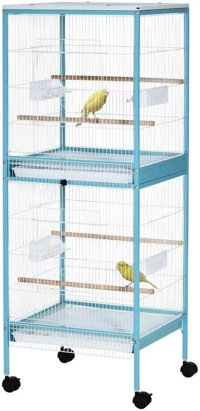 Birds need space for their wingspan, and this double bird cage allows impressive amounts of room from left to right, offering a distance that's wide for a homey environment. The doors on all sides allow easy access wherever you're coming from, making feeding quick and easy when you're on the go. This metal bird cage offers plenty of living space and room for activity. Keep your animals safe and happy with this indoor aviary from Aosom.