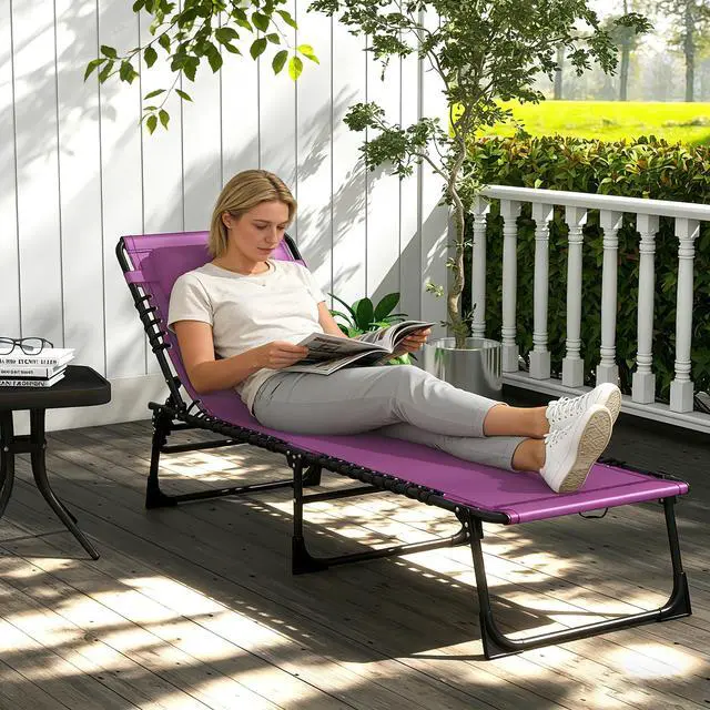 Revamp your backyard with a patio lounge chair by Aosom, and you can have a warm and inviting suntanning spot. The adjustable backrest can cater to your personal comfort needs with four positions to pick from. With a fast-folding design, relocating your lounge chair is effortless. Pop it in your trunk, bring it to the patio, or chase the sun to the other end of the pool. Create your own personal oasis. Get out, get comfy, get Aosom.