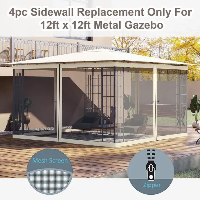 - - This gazebo screen mesh replacement fits a 11.8' x 11.8' 4-panel gazebo and is 6.8' tall from the ground