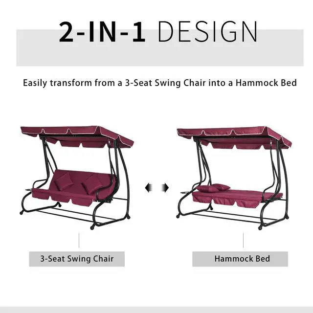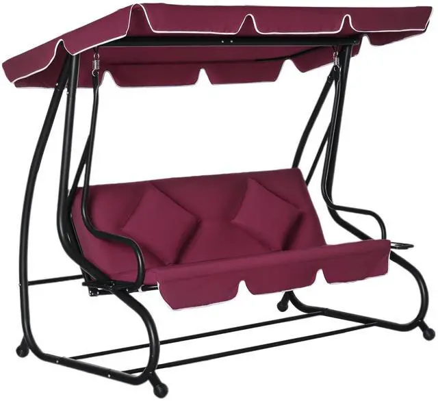 Go all out with Aosom. The whole surface of our swing bench is fully cushioned, which will come in handy when you convert it into a cozy covered day bed. A pillow will pad your head as a canopy overhead adjusts its angle to keep you cool and dry. It's a swing, a bed, a canopy, and it has cupholders, too, so you can enjoy using your swing without crying over spilled milk. With its own stand, you can stand it up in the backyard, garden, patio, or anywhere. Get out, get comfy, get Aosom.